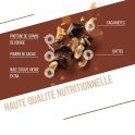 Toasted pumpkin seed protein*, date paste*, roasted peanuts* 17%, apple paste* (concentrated apple juice*, apple purée*), fair-trade dark chocolate* 8% (cocoa mass*, cane sugar*, cocoa butter*), agave syrup*, extra virgin olive oil*, cashew butter*, cocoa powder* 1.4%, Guérande sea salt.