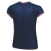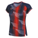 This model stands out with its energetic design: a vibrant blue base contrasted by black and white geometric patterns on the shoulders, creating a dynamic silhouette. Equipped with quick-dry technology, it efficiently wicks moisture to the surface to keep you dry. Its ergonomic fit, specifically tailored for the female body, combines absolute comfort with modern aesthetics, making this t-shirt a must-have for your intensive matches and training sessions.